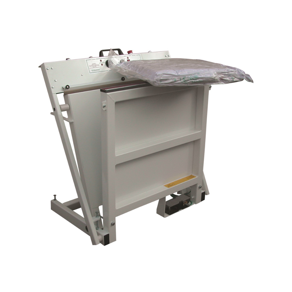 Macchina pneumatica per il confezionamento sia sottovuoto che tradizionale di piumoni e coperte. Ingombro cm 125x115x70 Peso kg 130 Da usare con sacchi sottovuoto PA/PE spes. 90my cm 80×110