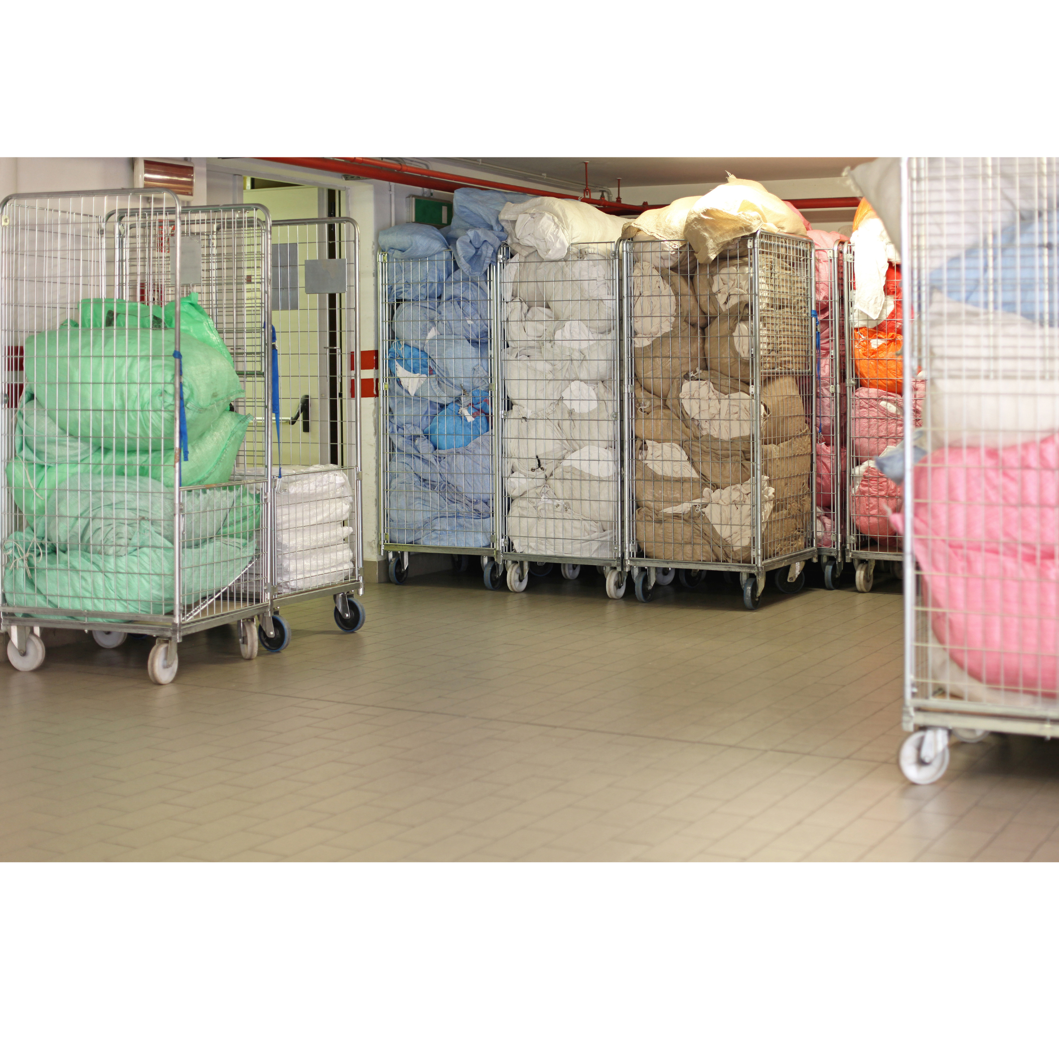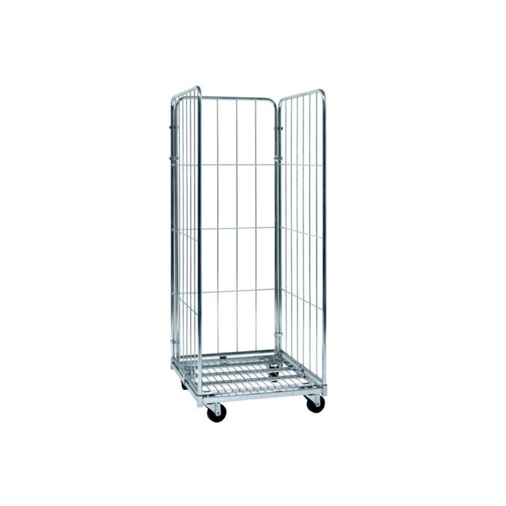 Realizzati con pareti in tubo tondo, agganciate tramite delle molle di fissaggio alla base, possono essere facilmente smontati per un rapido immagazzinamento. La terza parete permette al materiale trasportato di essere contenuto all’interno del roll. Possibilità di cambiare le ruote con tipologia anti-rumore.