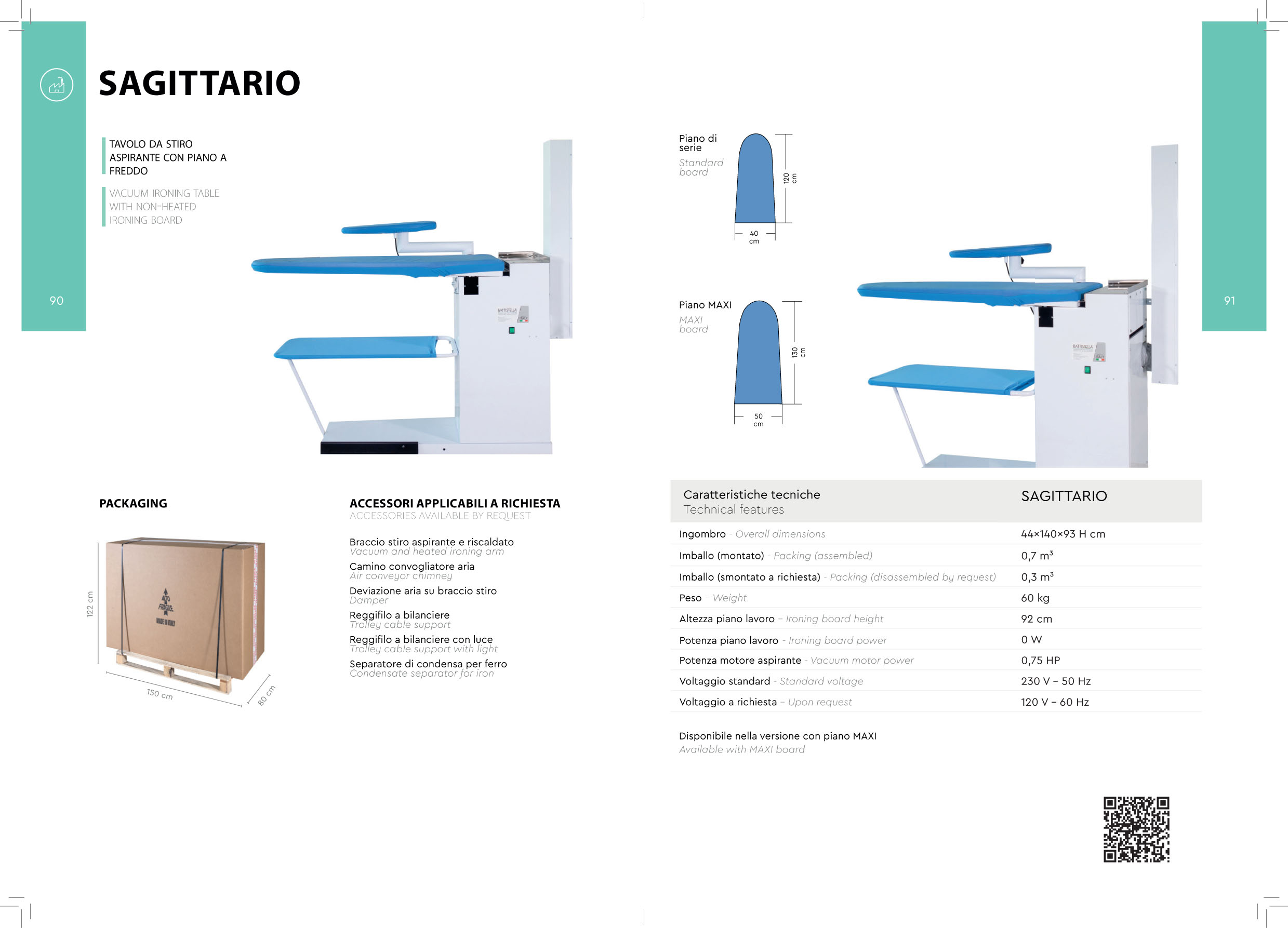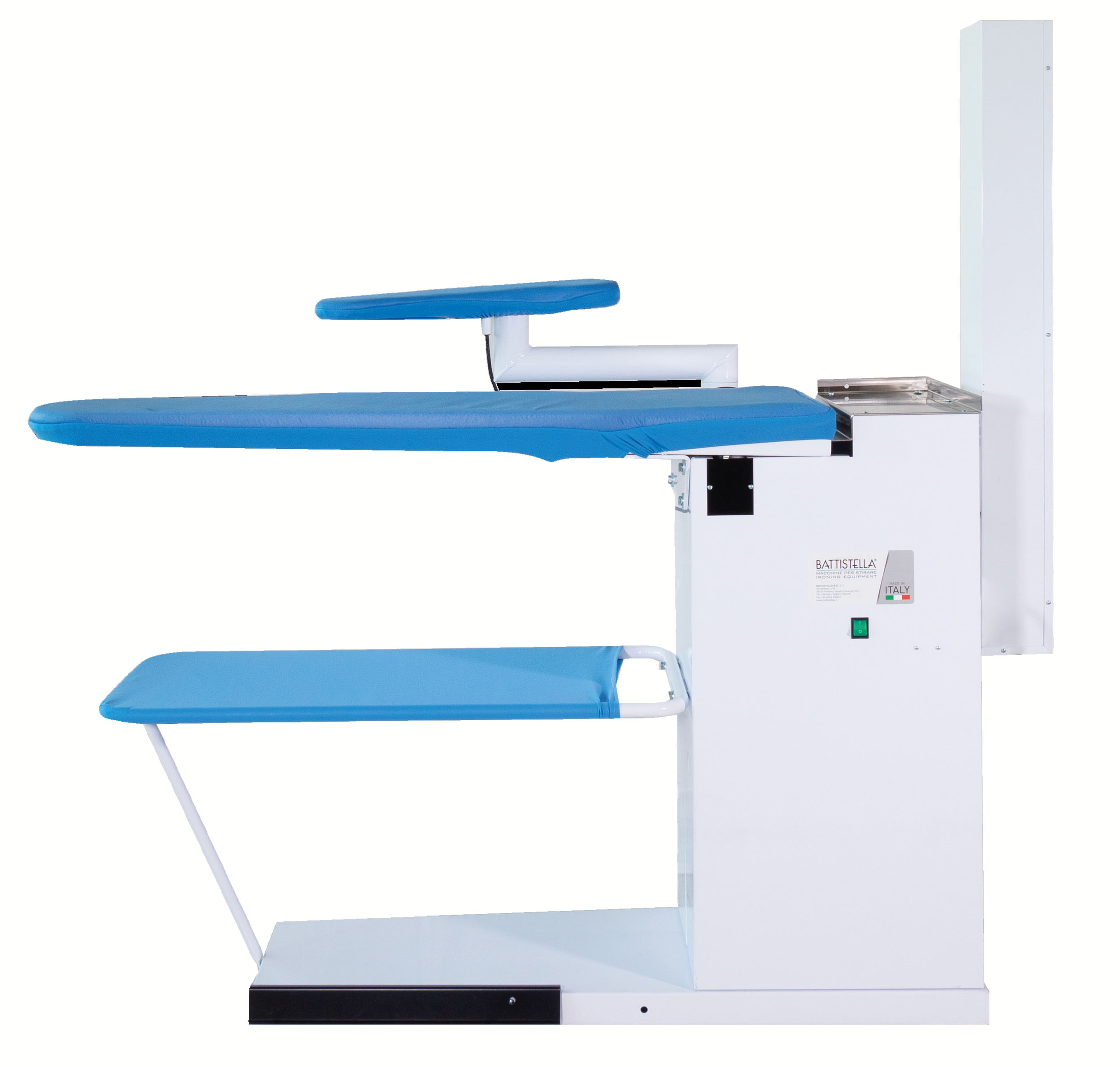 Tavolo da stiro aspirante, vaporizzante e soffiante, con piano a freddo, pannello comandi touch screen, ferro da stiro e caldaia in acciaio inox da 6 l.