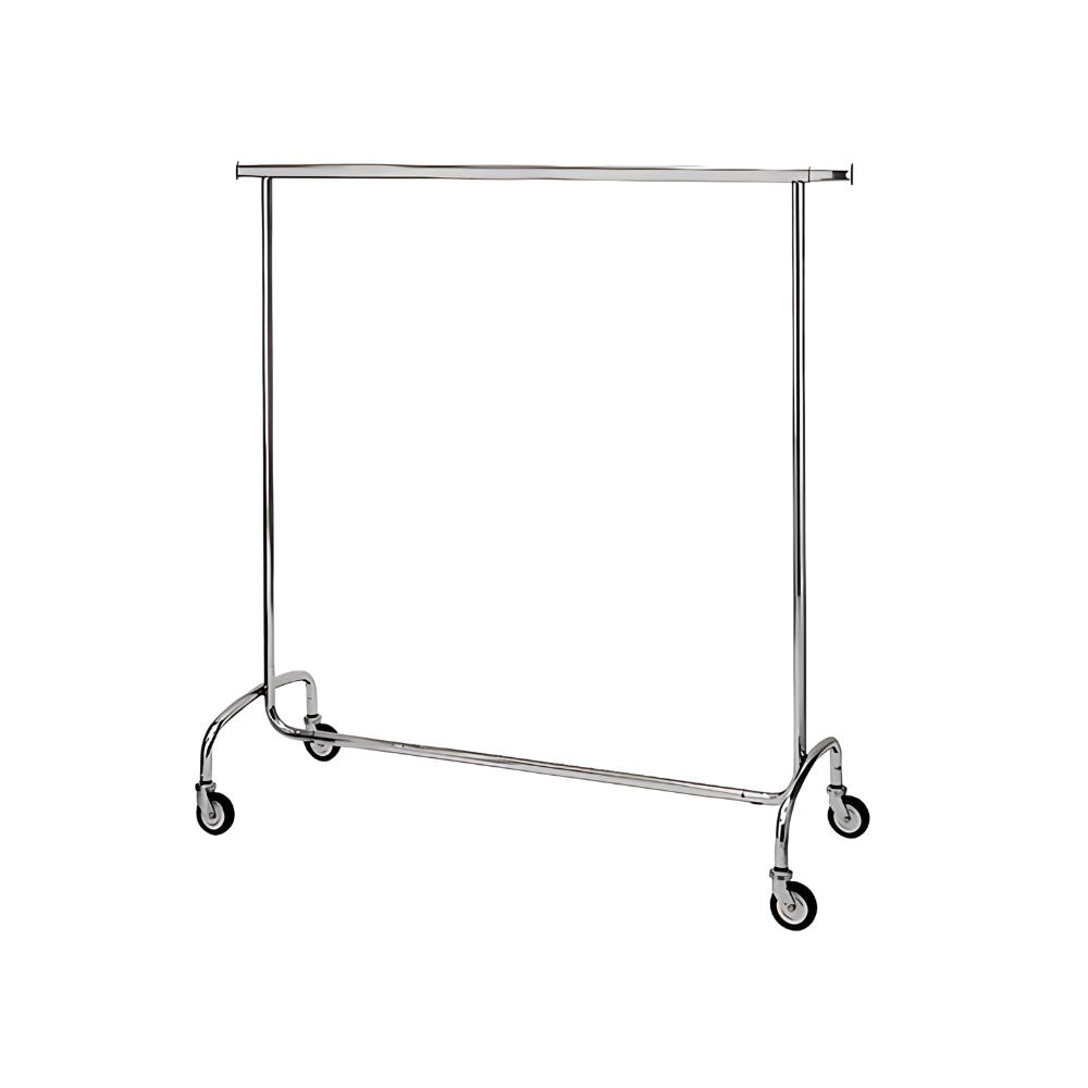 Stender tubo cromato mm 30. Dimensioni cm L 150+30+30 prolunghe laterali. Larghezza base cm 53 x H 160. Ruote mm 100.